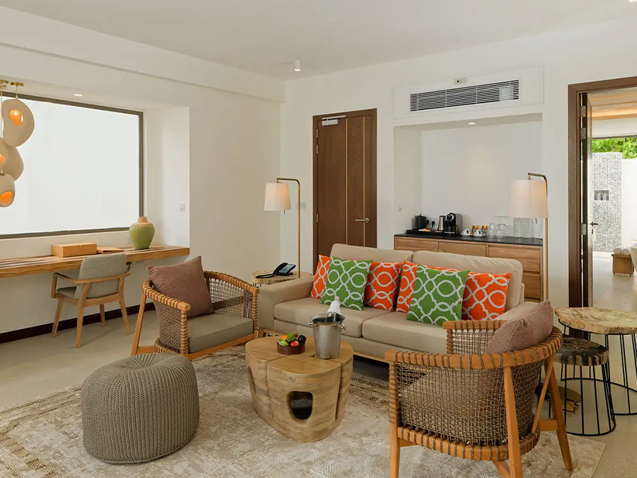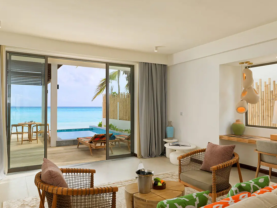 房型介绍:这间海滩套房设有三间卧室、独立起居区和私人小型游泳池,非常适合寻求空间和豪华的大型团体或家庭入住。酒店拥有直通海滩的宽敞空间,让您享受宁静的热带度假胜地。