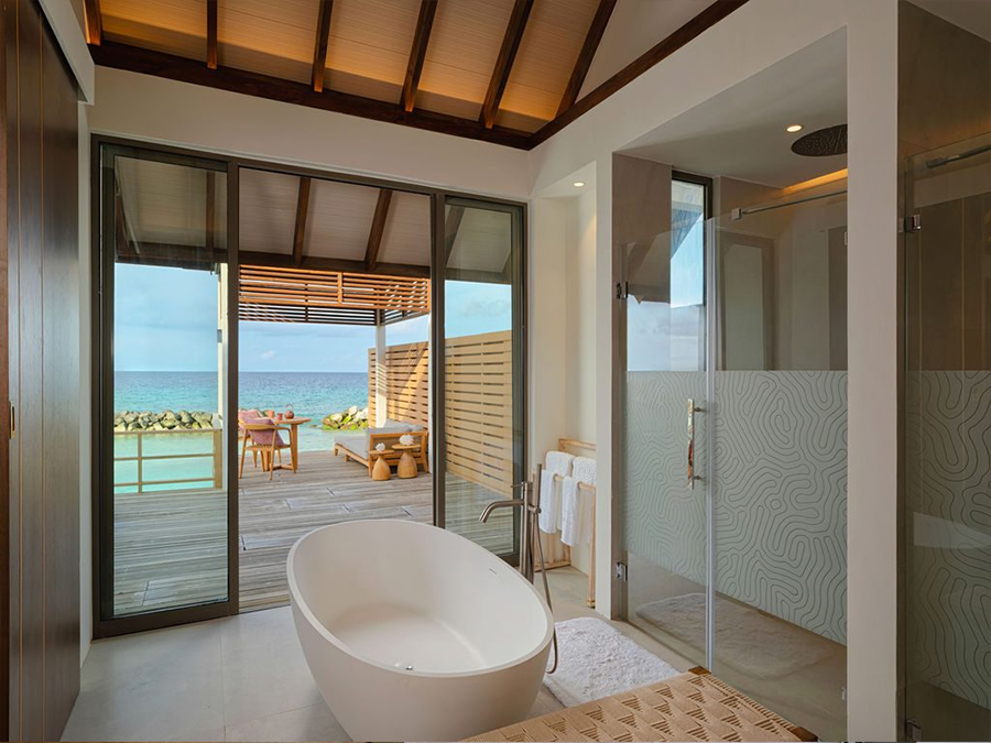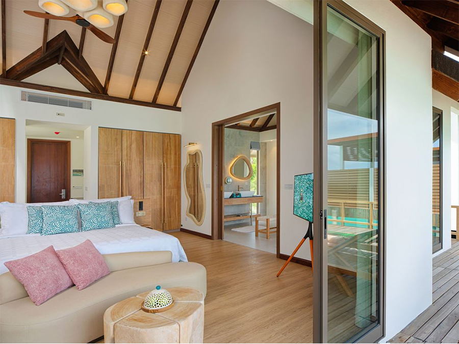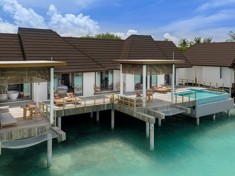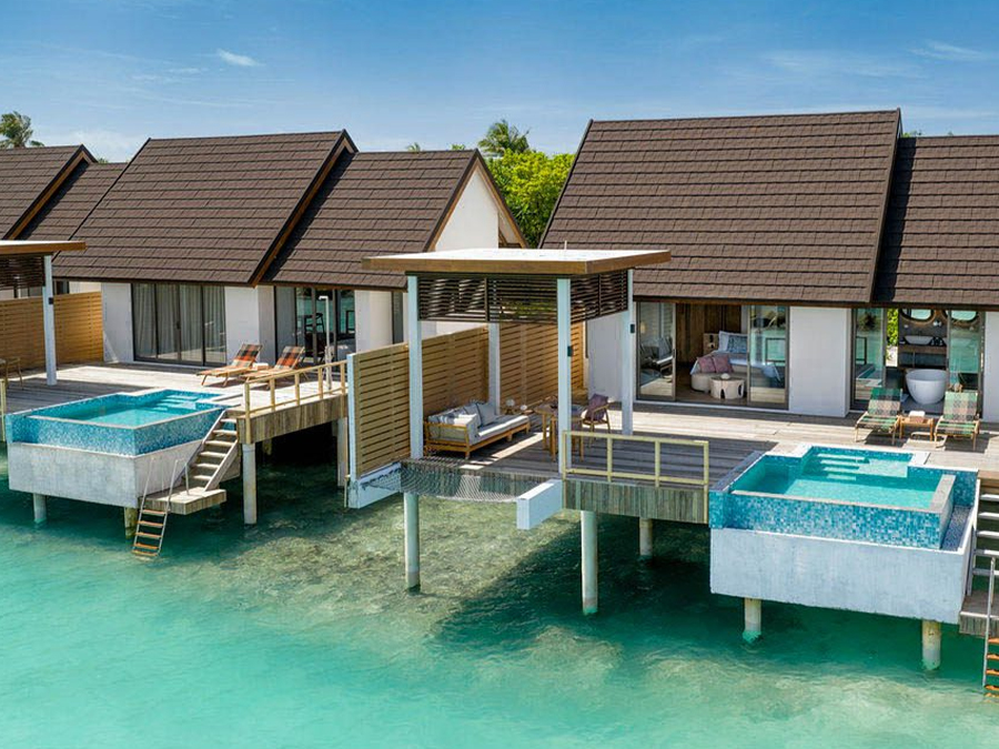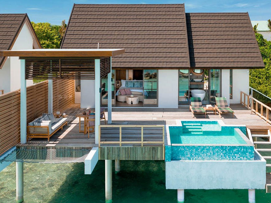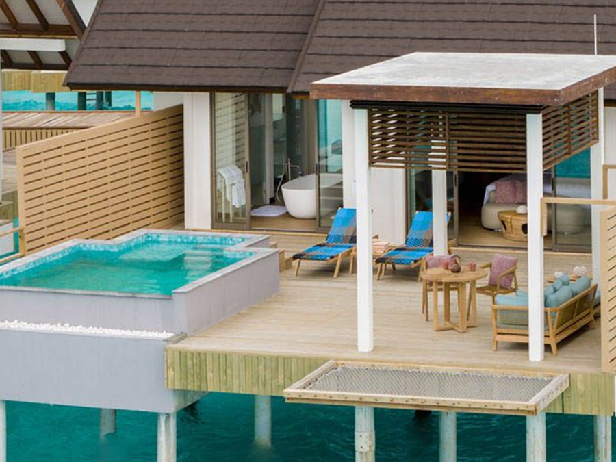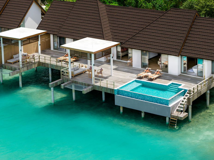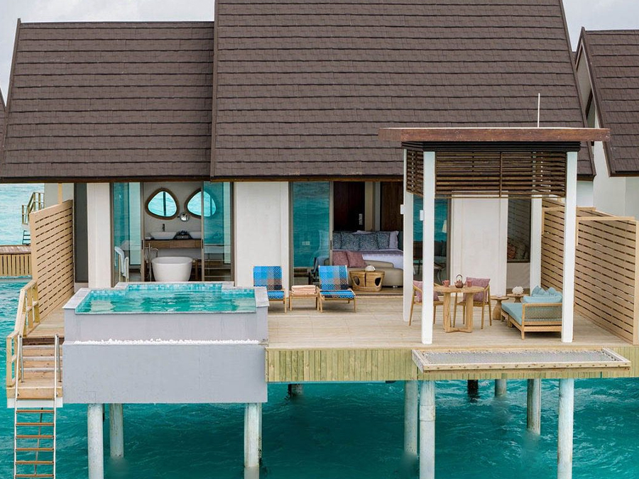 房型介绍:这栋别墅坐落在水面上,设有一间卧室和私人小型游泳池,这是一处私密的度假胜地。水上泳池别墅周围环绕着壮丽的海景,非常适合那些寻求风景如画的水上体验的客人。