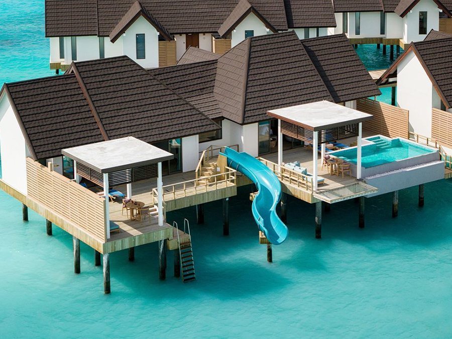 房型介绍:这栋别墅提供独特的乐趣和奢华,拥有两间卧室、一个私人小型游泳池和一个令人兴奋的滑水道。这座水上别墅非常适合家庭入住,确保客人享受难忘而有趣的住宿体验。