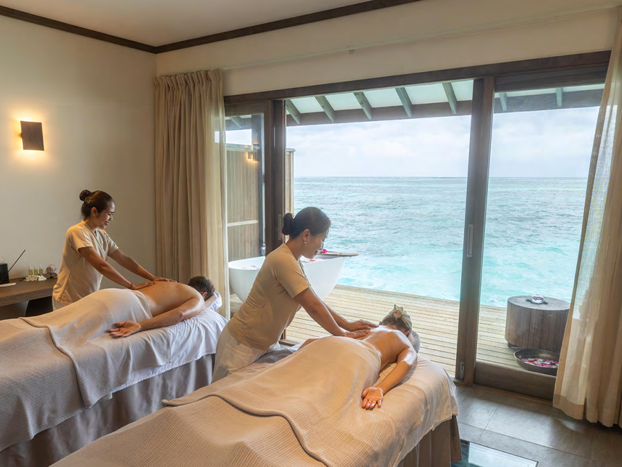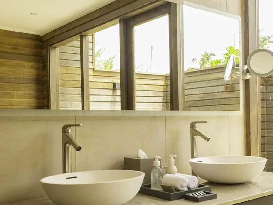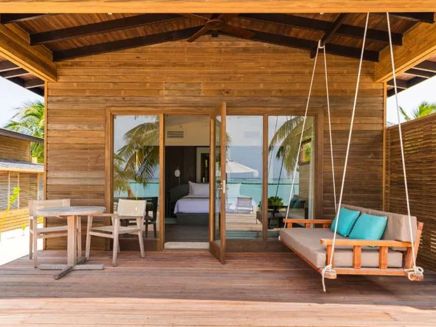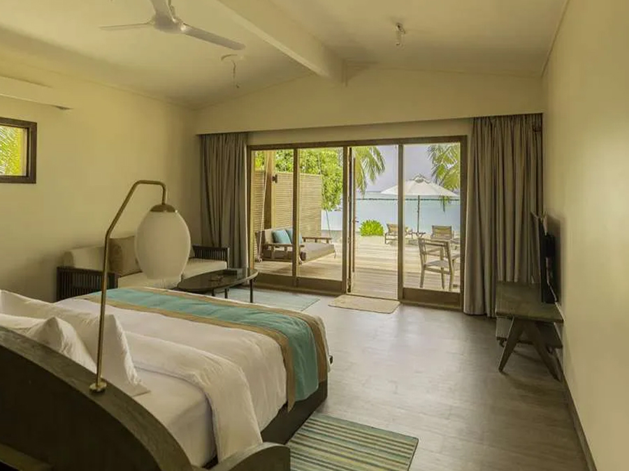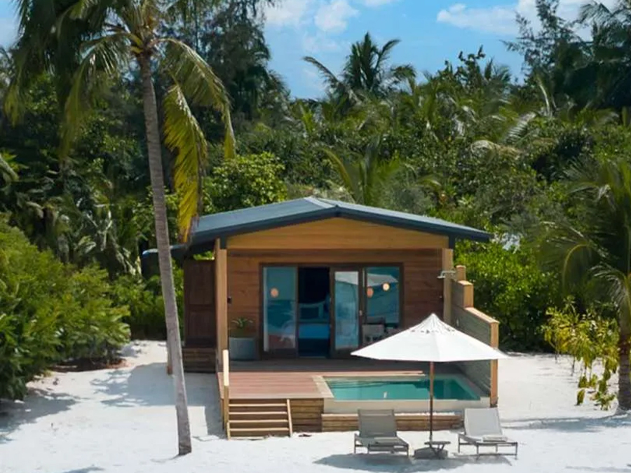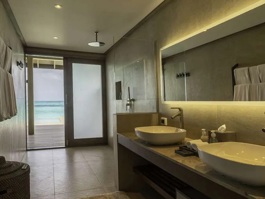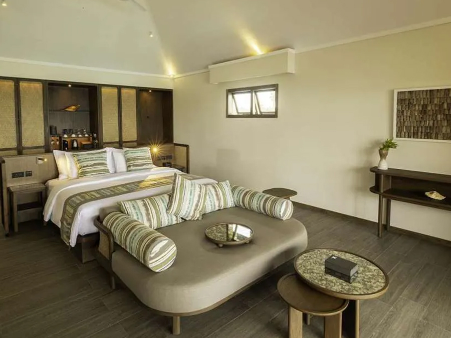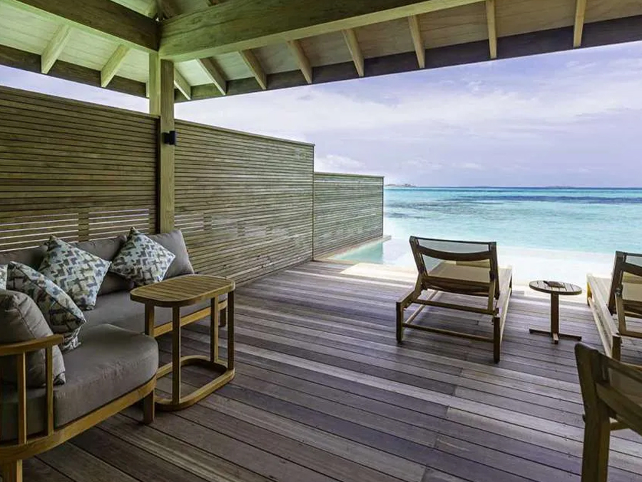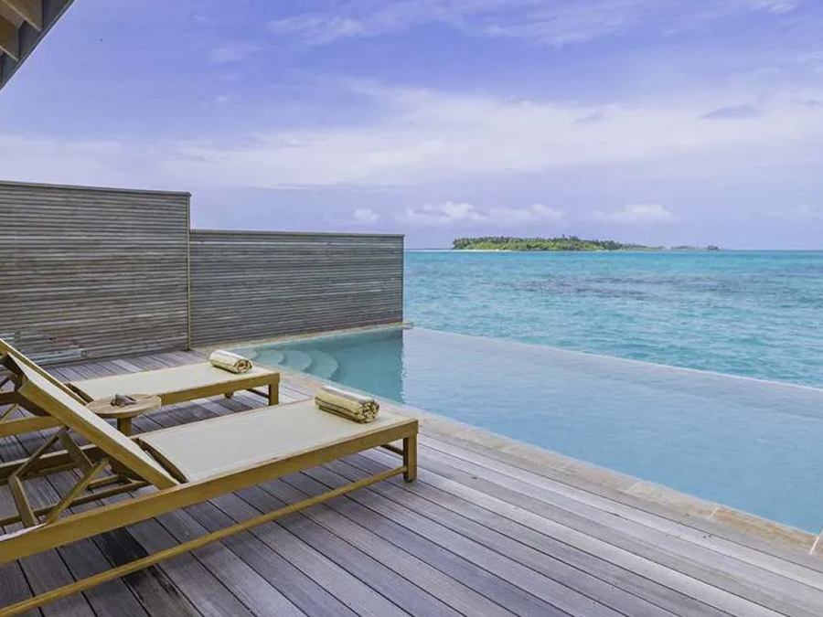 平方米,是高端度假之选。别墅可直接通往原始泻湖,方便潜水,也可在私人无边泳池放松,兼具隐私性与海洋体验。每栋均享壮丽海景,无边泳池与大海相映,内饰精致,融合奢华与海洋风格。室内设有宽敞主卧、特大床、休闲起居区、设备齐全的小厨房,以及带级联淋浴的浴室。宽阔露台配有躺椅和凉亭,适合日光浴、黄昏游泳或观赏海洋生物。