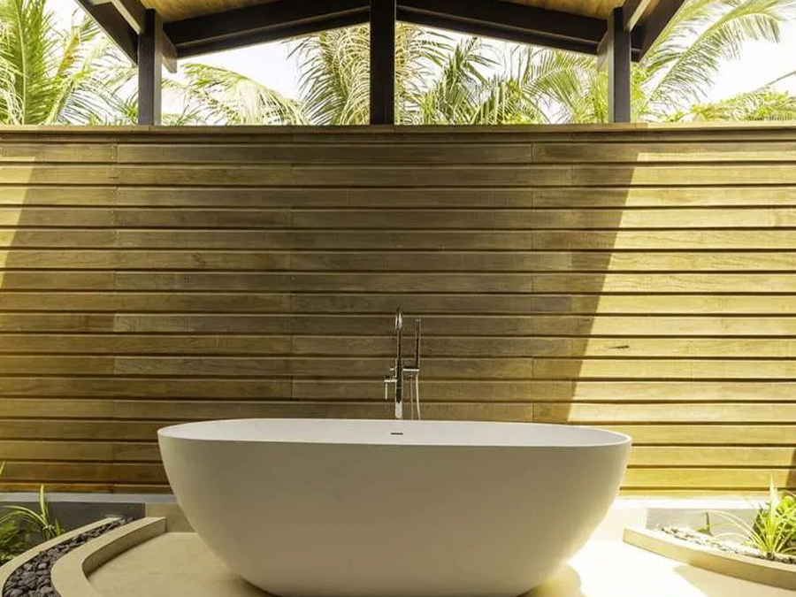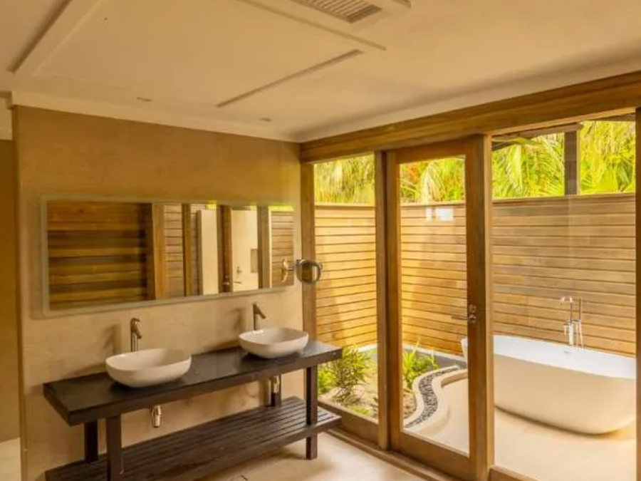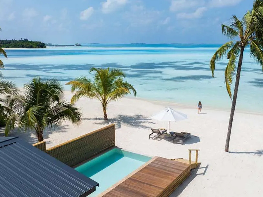平方米,配备私人无边泳池,可观赏日落景致。别墅可直接通往海滩,兼具隐私性与放松感,适合热带奢华度假。每间均享全景海景,现代内饰融合奢华与热带风格,设有特大床主卧套房、时尚休息室、设备齐全的厨房,以及带步入式淋浴间和浴缸的浴室。宽敞露台配有日光躺椅和遮阳亭,可在此享用鸡尾酒、户外用餐或观星。