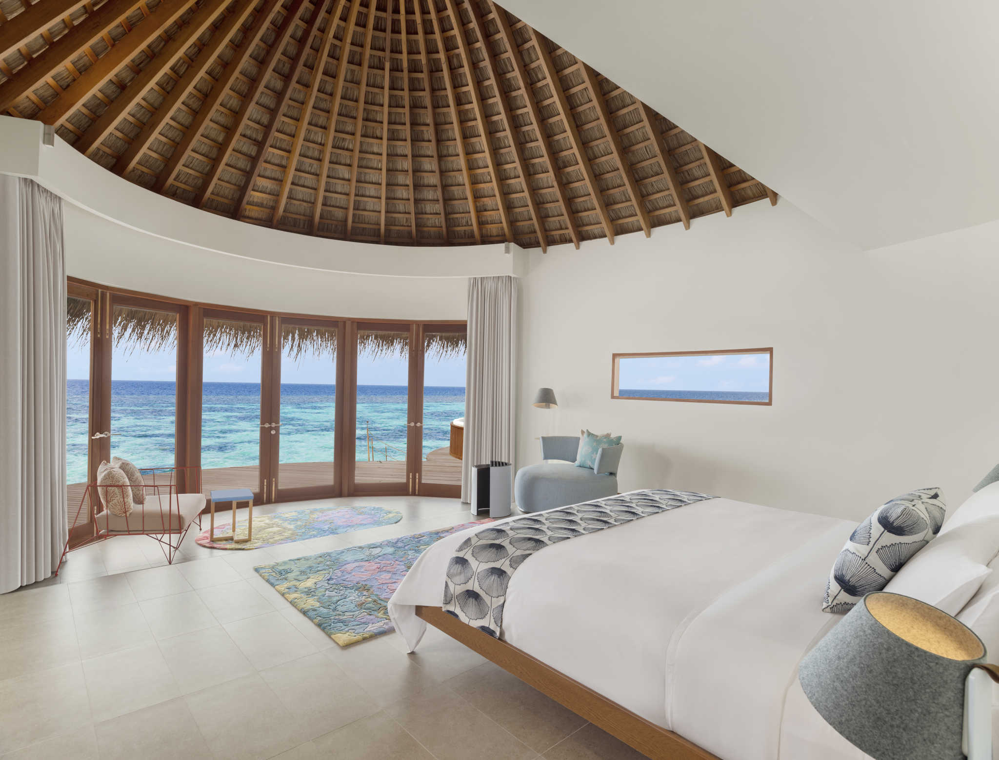 房型介绍:除了拥有与普水房型相同的玻璃地板、私人泳池等设施外,网床的设置为客人提供了更加惬意的休闲空间,可躺在网床上享受海风和阳光。