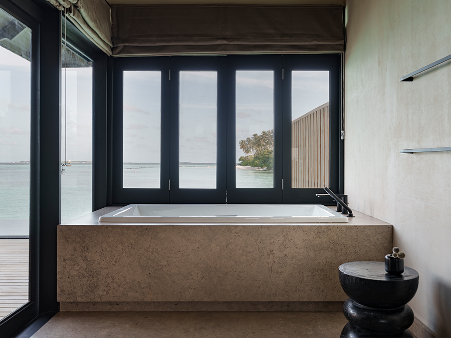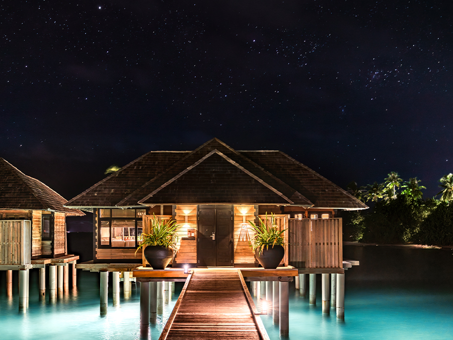 房型介绍:日落房型,比普通地平线水屋位置更好,其它房间设施一样。你可以每天在自己的私人按摩浴缸里欣赏马尔代夫的日落,手里拿着一杯香槟。私密而豪华,从一个装在窗户上的水疗浴缸可以看到地平线的景色,这些都是岛上最令人垂涎的住宿。