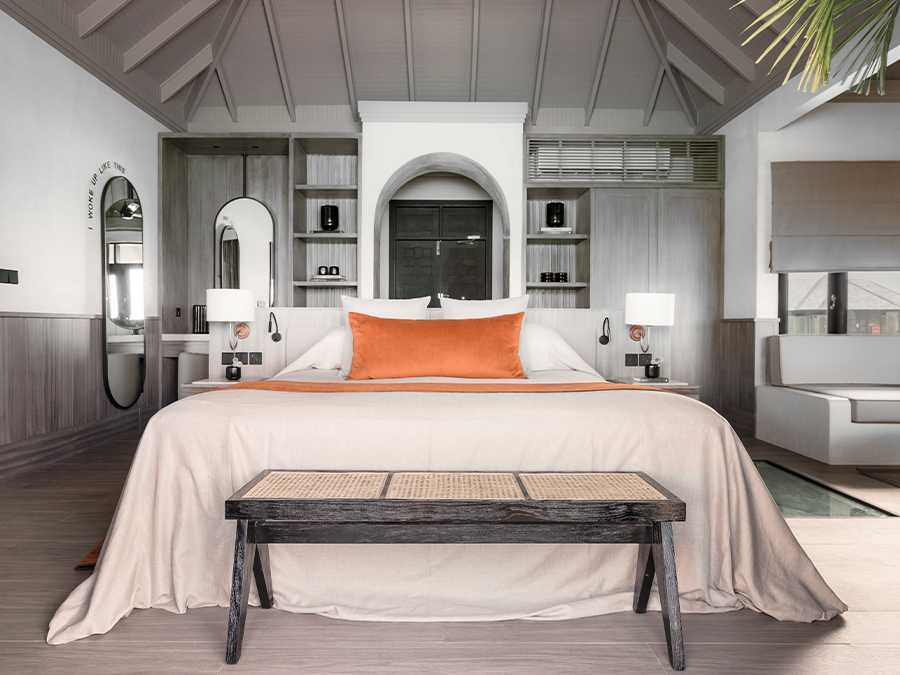 房型介绍:别墅位于岛屿中部,有24小时专职管家服务。这里被茂密的植物所包围,私密性非常好,有两间卧室,是朋友以及家庭出游的最佳选择。除了入口庭院外,它还有两间特大号卧室、一个大客厅和厨房,以及一个宽敞的室外露台,露台上有一个由私人花园环绕的大型游泳池。