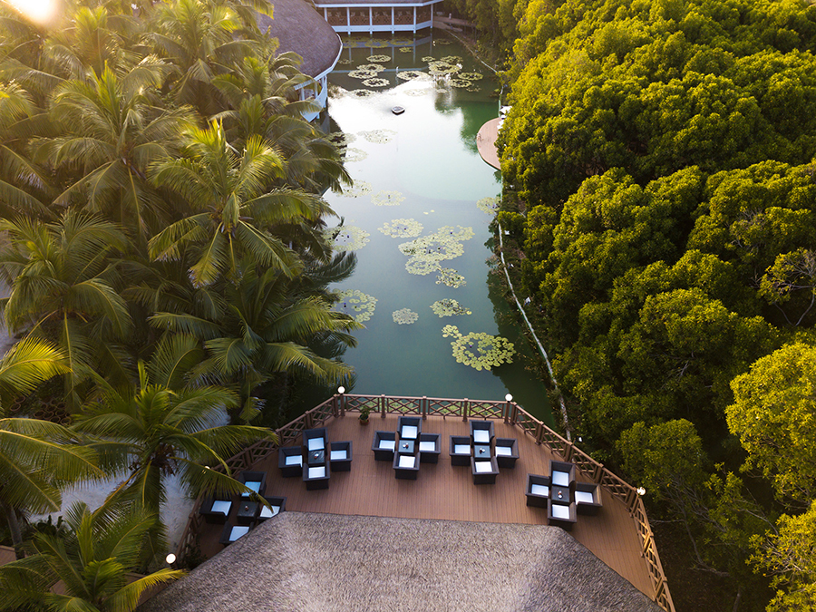 马尔代夫梦境岛 Dreamland Island于2018年开业,位于芭环礁Baa-Atoll,呈椭圆形,环岛周长960米,属于小型岛,从马累出发乘坐30分钟的水上飞机或者20分钟的内飞再换乘10分钟的快艇即可抵达。岛上总共有客房90间,其中沙滩客房60间,水屋客房30间,设有2间餐厅和2间酒吧,水疗中心由酒店自营,有着美丽的白色沙滩,和马尔代夫独一无二的植被覆盖,该岛最大的特色在于位于岛中央有1600平米的淡水湖,是一座小型的生态园。另还设有一处无氯泳池,客人们可在此畅游。