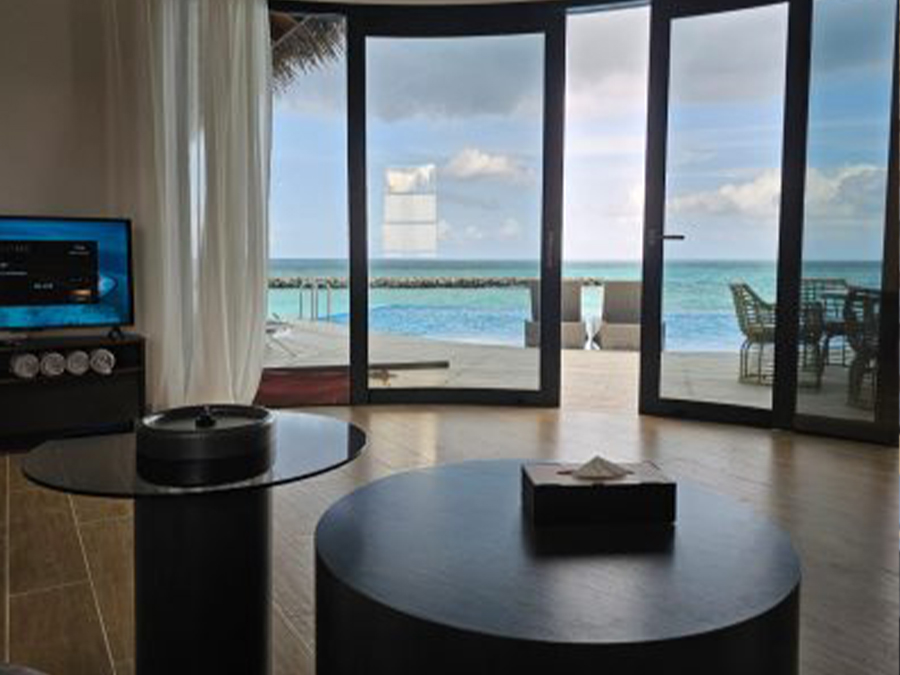 房型介绍:双卧海滩泳池别墅总共只有1间,房间面积350平米,岛屿上最大的沙滩别墅,特别适合家庭或亲密的朋友居住。两间宽敞的卧室均可欣赏海景。别墅提供室内室外娱乐区,配备大型私人游泳池和按摩浴缸。该房型最多可以入住5名成人加1名小孩。