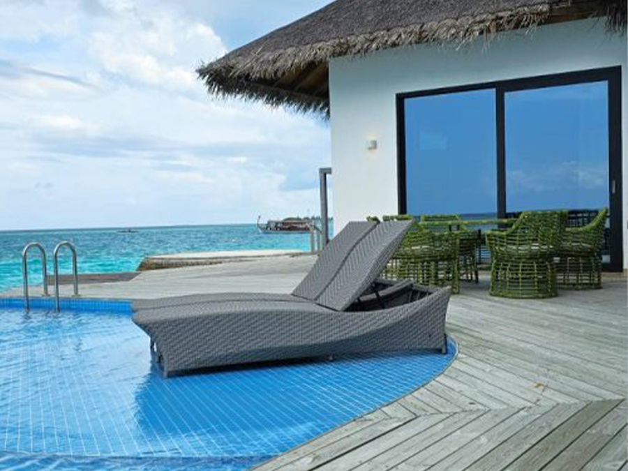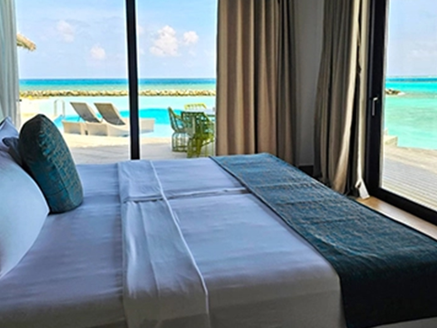 房型介绍:双卧水上泳池别墅总共只有1间,房间面积370平米,岛上面积最大也是景色最好的豪华别墅,配备私人泳池和按摩浴缸,让你和家人朋友充分享受马尔代夫的美丽和舒适。该房型最多可以入住5名成人加1名小孩。