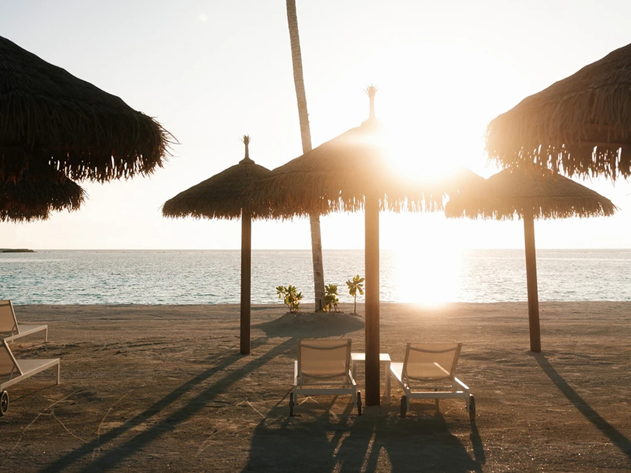 房型介绍:岛上的基础房型,总共有40间,面积40㎡,不带私人泳池,海滩别墅位于位于岛屿东侧,拥有令人惊叹的日出美景,每栋别墅都有一间典型的马尔代夫露天浴室,供客人使用。最多可以入住3名成人或者2名成人+1名小孩。