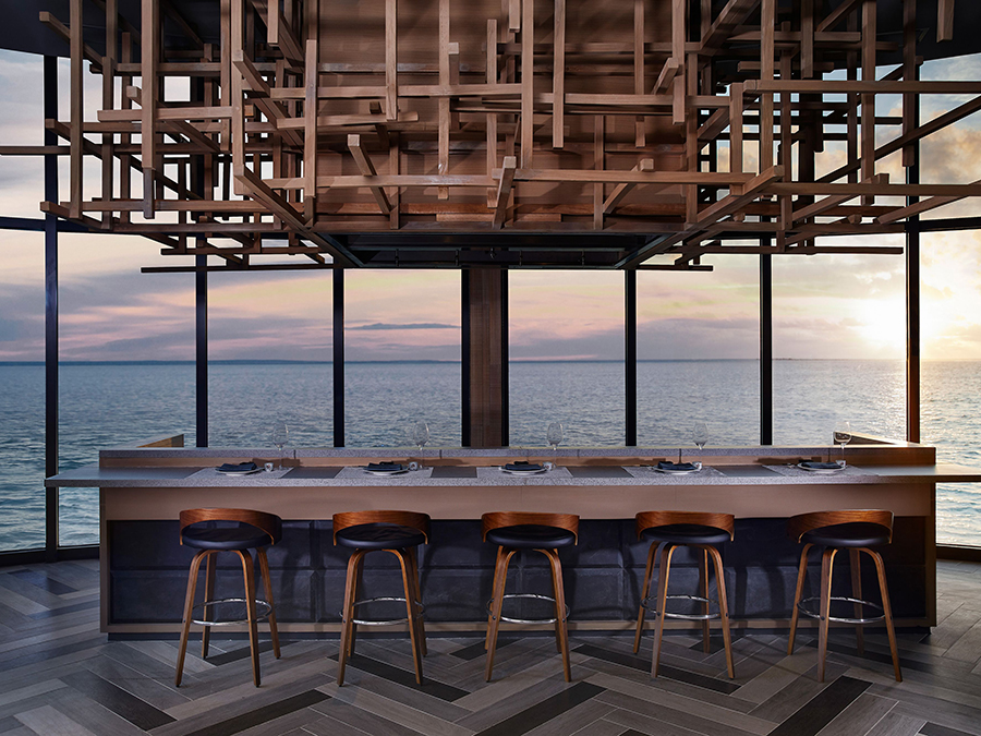 餐厅介绍:日本餐厅位于西面水屋栈桥入口处,在潟湖之上,在用餐的同时可以看日落,主要提供晚餐点餐服务,能提供各种美味日本料理。Tabemasu在日语中被定义为“吃”,它是一种独特的餐饮体验,艺术、设计和烹饪结合在一起,创造出一种别致的餐饮之旅,具有地方风味,融合了现代和传统技术与高级法国米萨餐厅。
