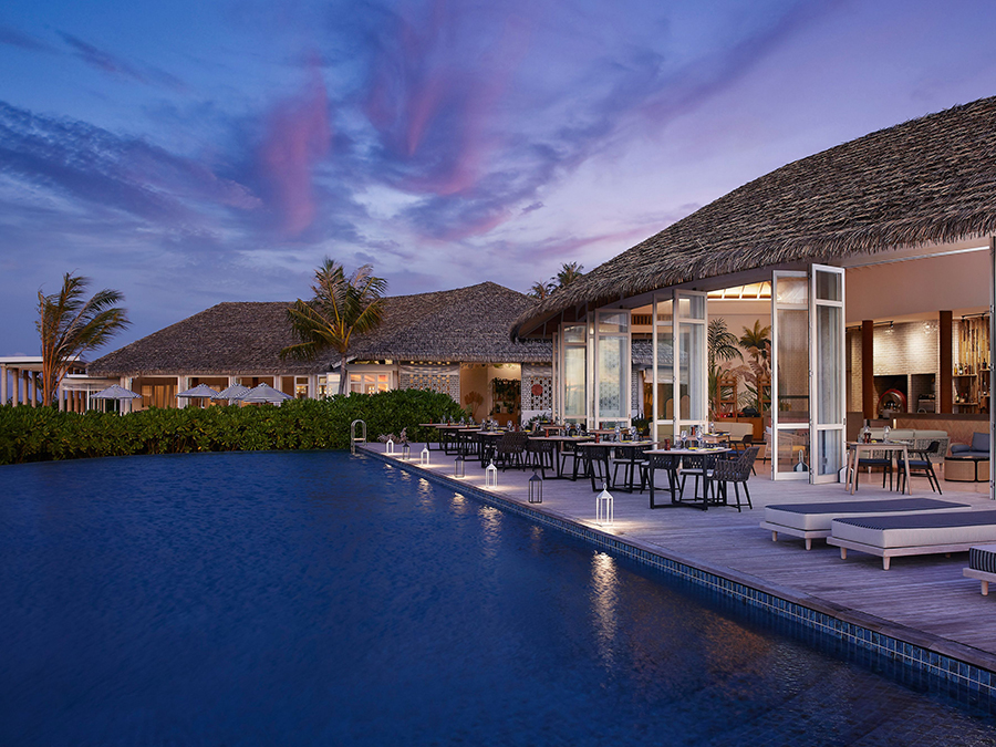 餐厅介绍:主餐厅位于沙滩边上,有室内和室外的位置,你包含的餐大部分都是在这里用,能提供早中晚三餐,以自助餐为主。餐厅在设计和烹饪方面都非常有特色,是一个新鲜、互动的市场,客人可以在这里从早餐到晚餐享受新鲜的海风和无尽的景色。客人除了品尝亚洲风味和现代欧洲风味外,还可以品尝马尔代夫当地菜肴。