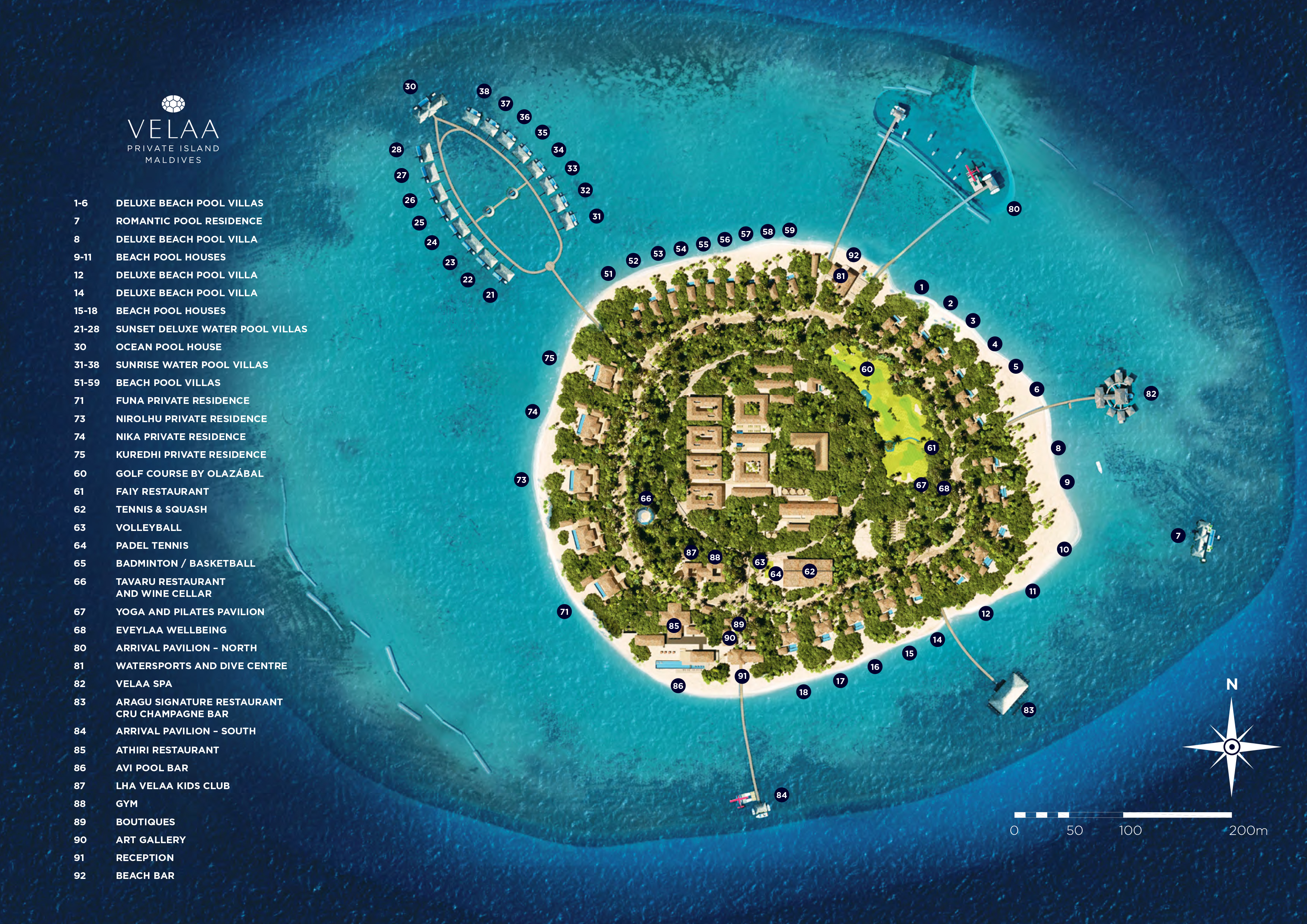 介绍:由以短打技术闻名的José María Olazábal设计,维拉高尔夫学院是一种独特的高尔夫体验。每一块草地是从夏威夷空运过来的,工作室提供一对一的PGA专业人士的最新挥杆分析技术的帮助下,一对一的学费,还配备了一个Trackman模拟器,以提高高尔夫课程体育和健身设施包括马尔代夫仅有的网球场、壁球场、攀岩墙、最先进的“技术健身房”,甚至还有一个足球场。个人瑜伽和冥想课程在高架瑜伽馆、私人花园或海滩上举行。