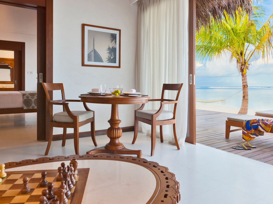 房型介绍:豪华水上泳池别墅设有一个供客人享受豪华空间的客厅。客人可享受轻松自在的阅读时光,亦或在宽敞的空间里自由玩耍,享受最佳的舒适度。