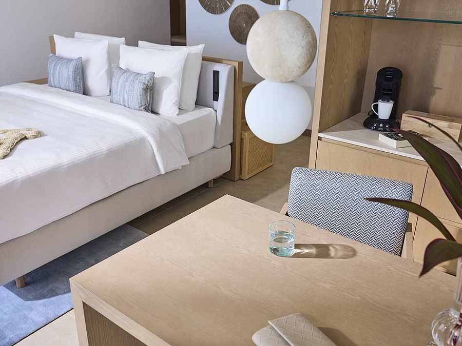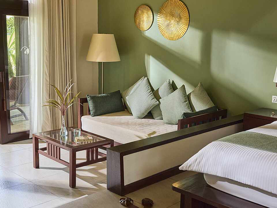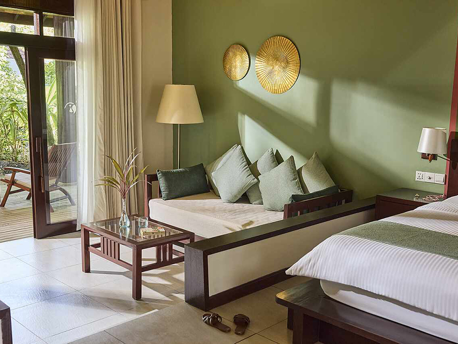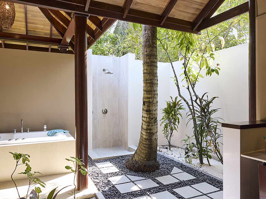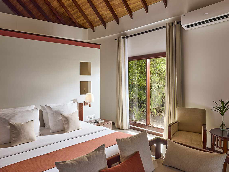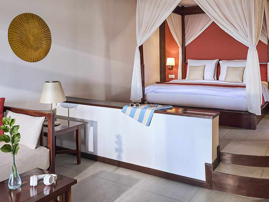 房型介绍:别墅位于中央花园的位置,在岛内,并不靠近海边。卧室和客厅由2个台阶隔开,卧室配有特大号床,设有露台,户外浴室设有淋浴花洒、浴缸、卫生间、吹风机、化妆镜等。提供保险箱、冰箱、平板电视、电话和无烟区。