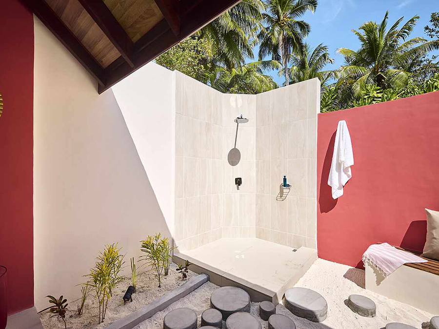 房型介绍:别墅位于沙滩边上,是鲁滨逊价格最高的沙屋。卧室配有特大号床,设有露台,户外浴室设有淋浴花洒、浴缸、卫生间、吹风机、化妆镜等。提供保险箱、冰箱、平板电视、电话和无烟区,部分房间有步入式衣柜。