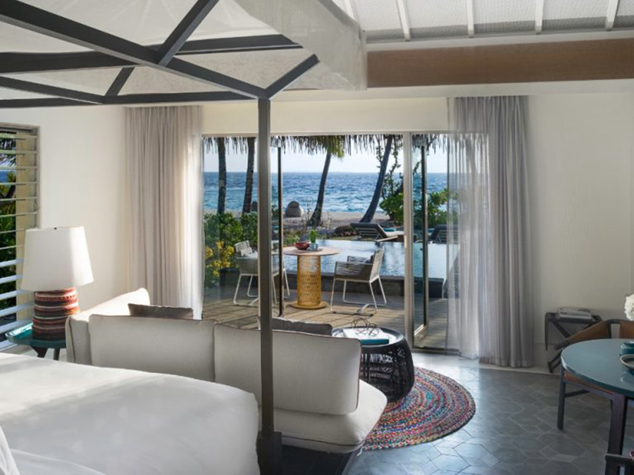 房型介绍:这座拥有三间卧室的潟湖住宅是酒店第二贵的房型,有日落美景,并且私密性绝佳,绝对是家庭度假放松的好地方。别墅融合了当代马尔代夫设计和印度洋壮丽的景色,所有设施一应俱全。