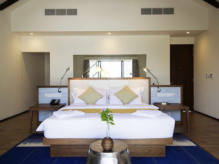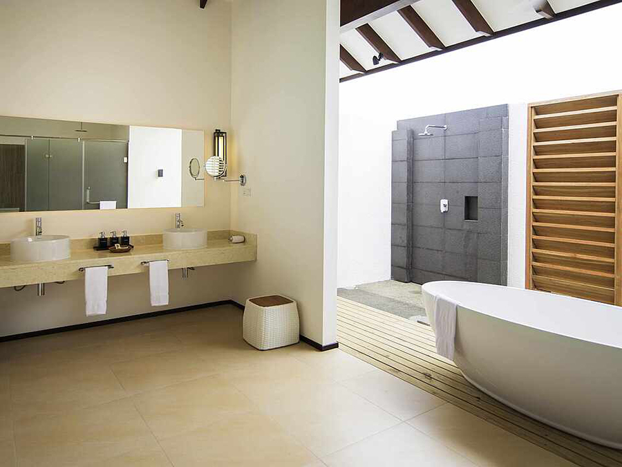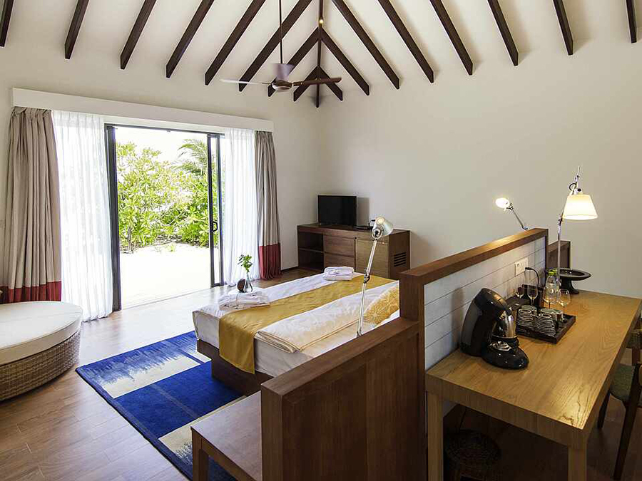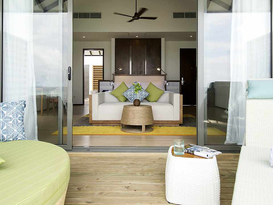 第三人的住宿为沙发床(尺寸:0.90米×2米);第四人的住宿为折叠床。出于安全原因,推荐9岁及以上的儿童入住环礁水上屋。在最大容纳内,可提供婴儿床,预定时需说明。