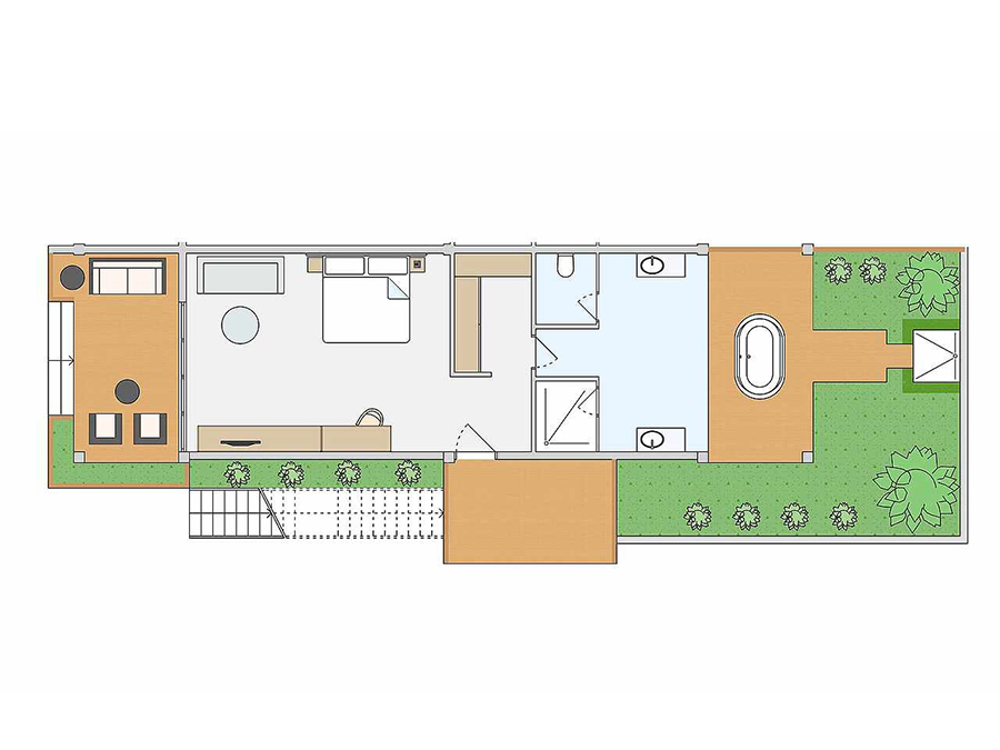 房型介绍:房间带日光浴床、座位和私人泳池的露台(尺寸:200x410厘米,深度:120厘米)可欣赏日落海景。
